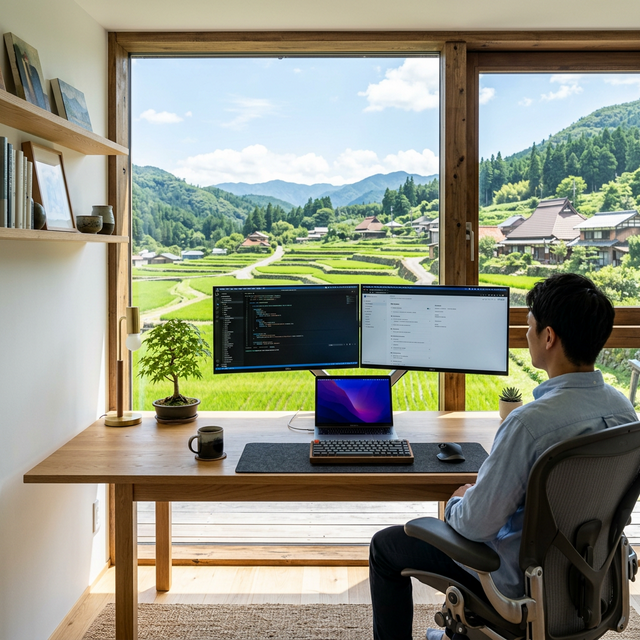 フルリモートの仕事を確保すれば、田舎に住みながら都会並みの年収を維持できます。しかも家賃は3分の1以下、食費は地元の新鮮な野菜で大幅削減。「年収は変わらないのに、使えるお金は2倍」——これが田舎リモートワーカーのリアルです。