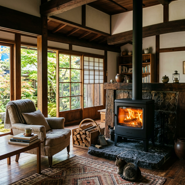 それでも導入を決意したのは、先述の通り、電気暖房では古民家の底冷えに太刀打ちできなかったからです。どんなにエアコンを焚いても、窓の断熱をしても、家の構造上、根本的な暖かさには限界があると感じていました。足元は冷たく、乾燥するばかりで、猫たちもどこか寒そうです。そんな時、偶然訪れた友人宅で、薪ストーブの暖かさを体験したのです。部屋全体がじんわりと温まり、炎の揺らめきは心を落ち着かせ、何よりも「輻射熱」という体の芯から温まる感覚に感動しました。「これだ!古民家を本当に暖かくするには、これしかない!」と確信しました。